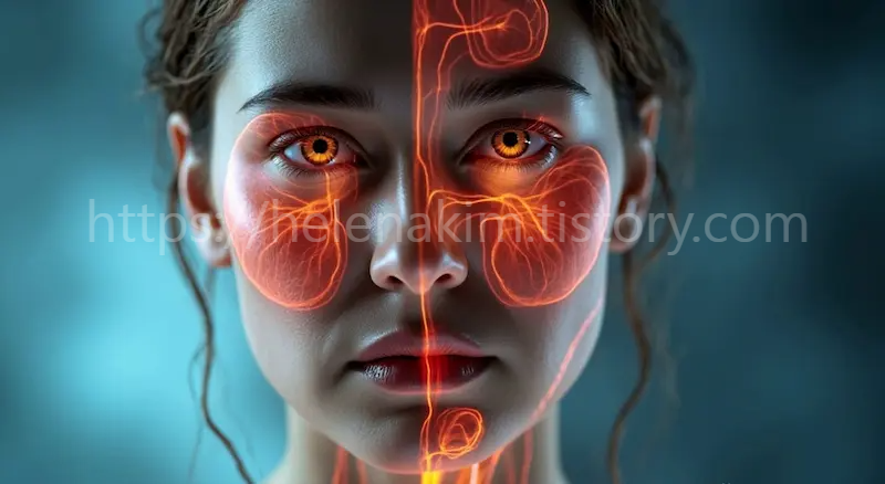 얼굴 부위의 대표적인 당뇨 합병증 이미지.