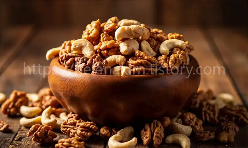 아몬드, 호두 등 견과류  혈당 지수 낮고 건강한 지방 함유, 간식 대체용으로 추천