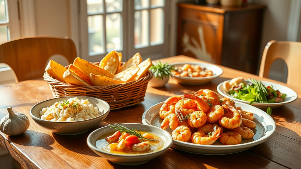 바게트 빵을 찍어 먹으면 마늘의 깊은 맛과 새우의 고소함이 어우러져 완벽한 조합을 이룹니다.