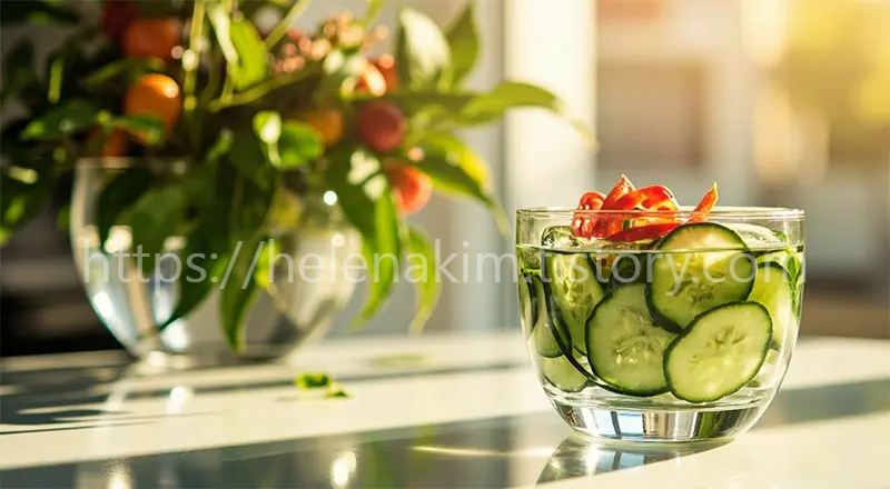 물, 오이, 수박 등 수분이 많은 음식을 통해 탈수를 예방합니다.