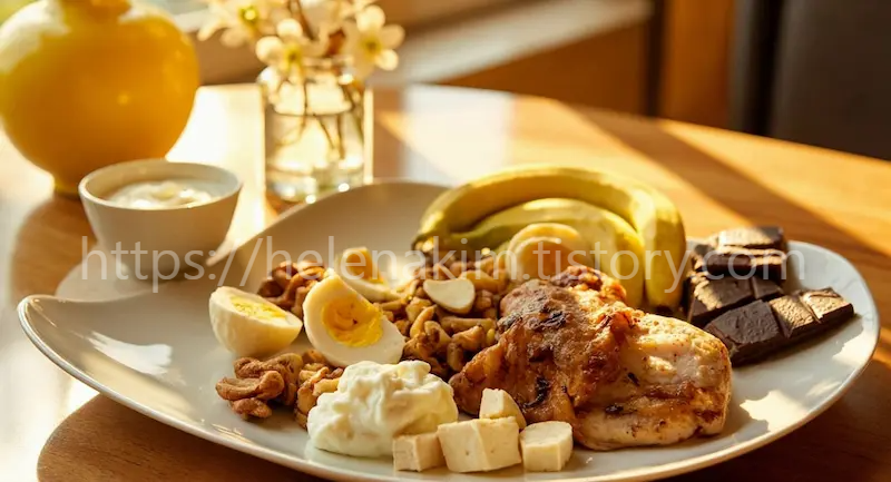 그중에서도 트립토판이라는 아미노산과 비타민 B군, 마그네슘 등이 풍부한 식품이 핵심입니다.